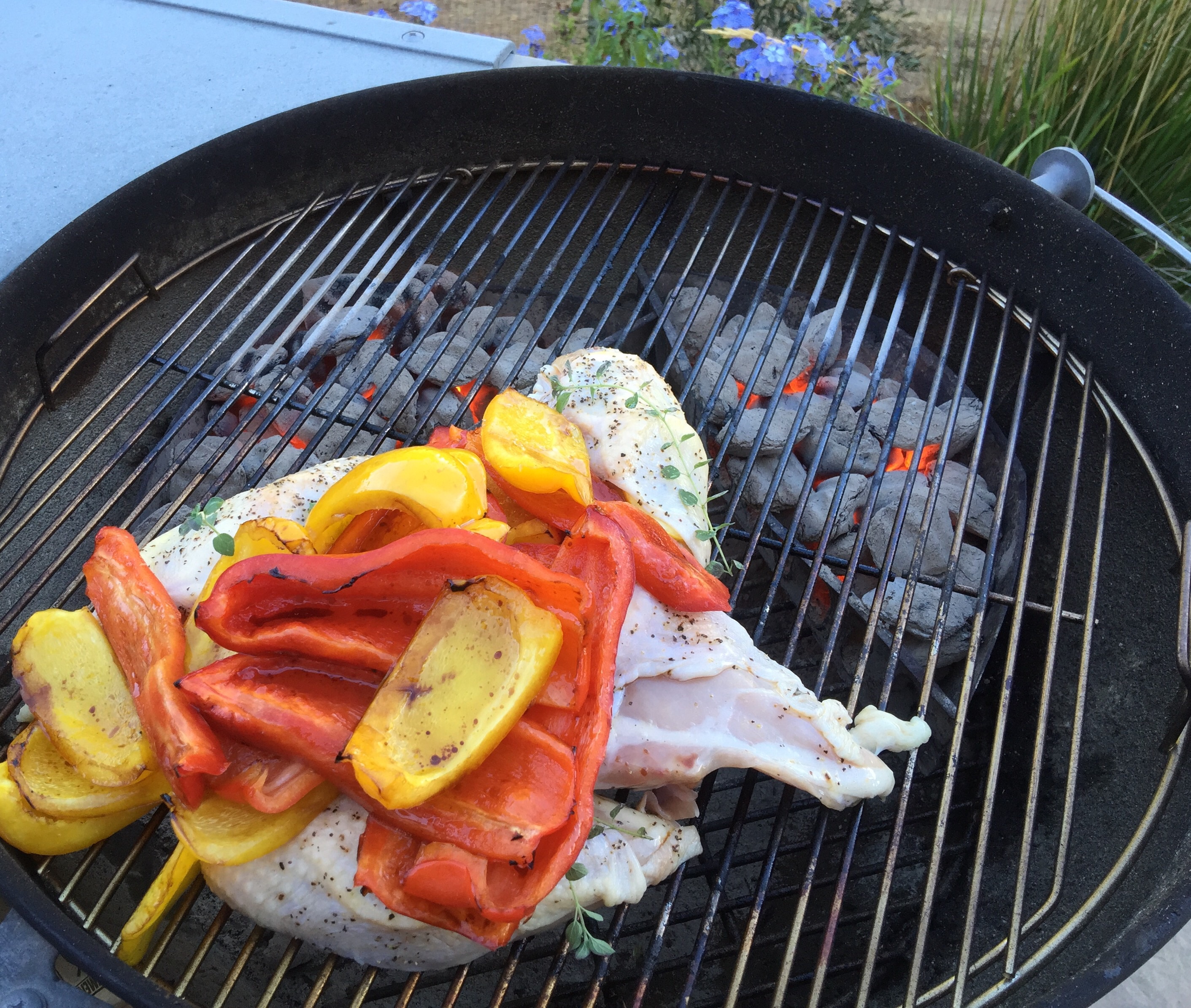 We had to grill something(s) for dinner and make lots of leftovers for the week:  chicken, peppers, roasted red and yellow beets, roasted cauliflower, salad, baked potato…we are home!