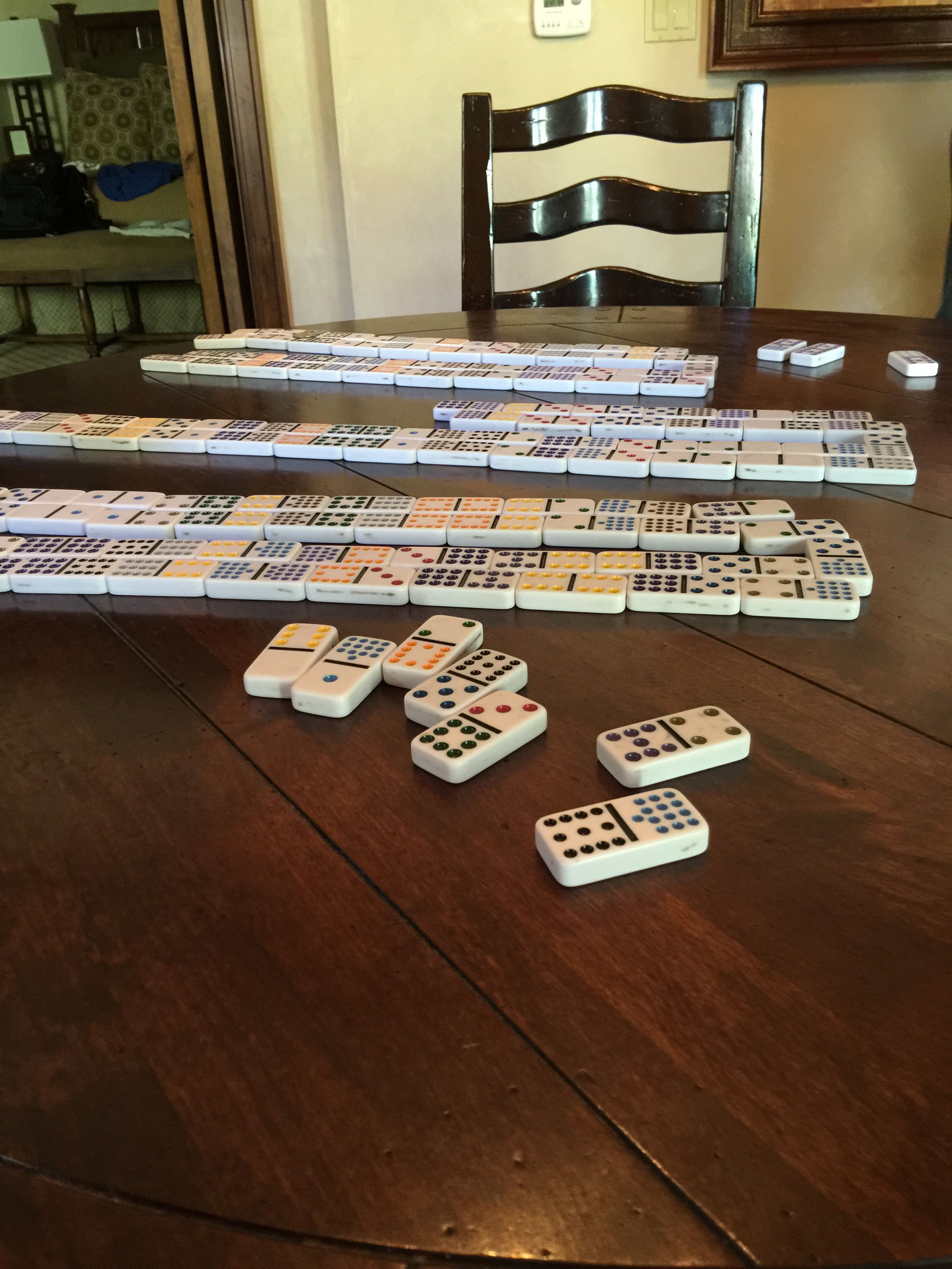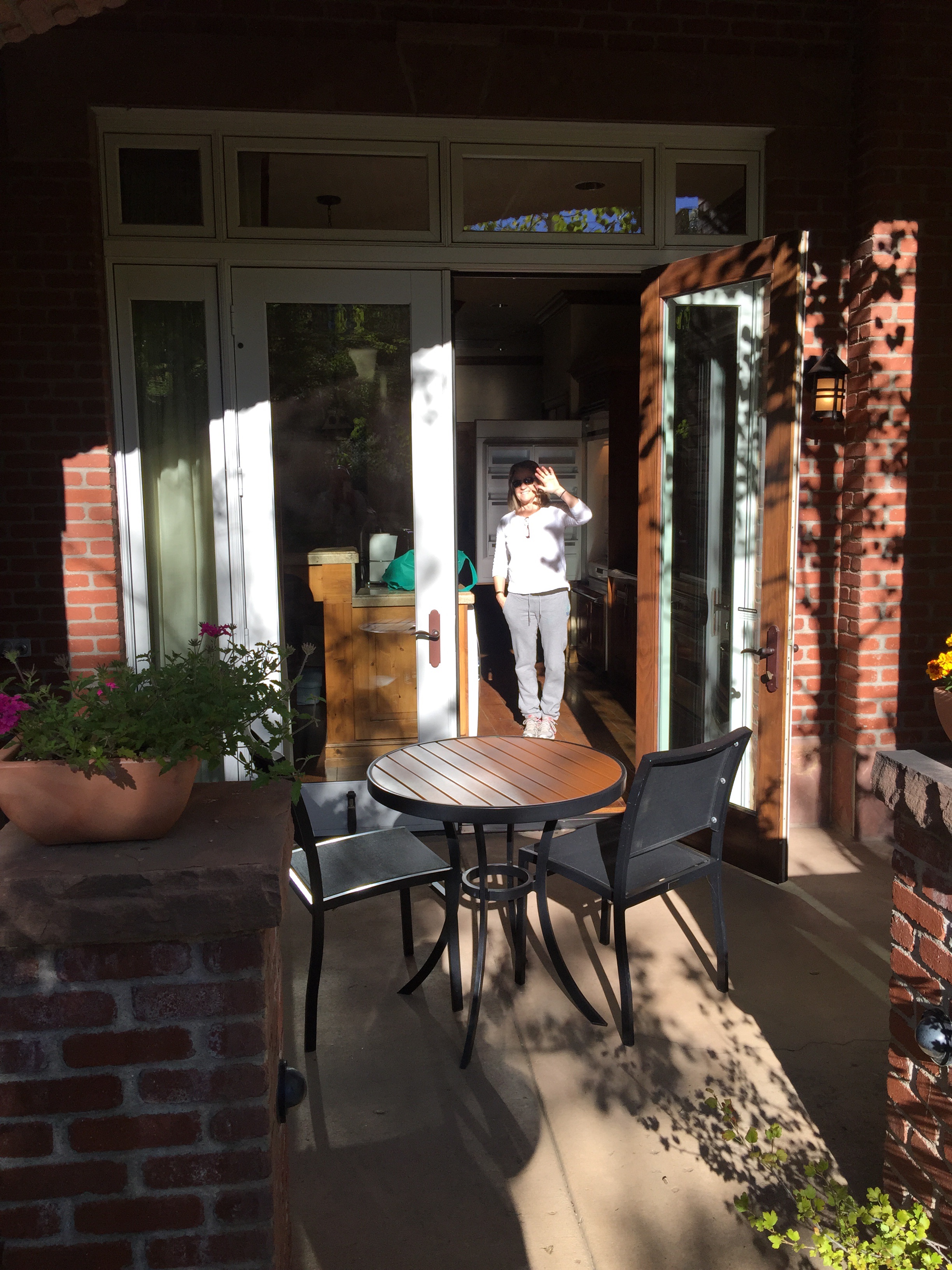 We spent the whole day in our room and on the two patios going between the sunny one and the shady one.  A couple of more walks to the grocery store for roast chicken and the wine shop for some chardonnay (we brought 6 bottles of various reds…. to take in restaurants and/or to drink in our room).  A wonderful relaxing day watching football, reading, playing dominoes, eating proscuitto, havarti, salami, crackers, chips, salsa, watermelon, cantalope….. Heaven!    49ers lost but so did the Seahawks so balanced somewhat.