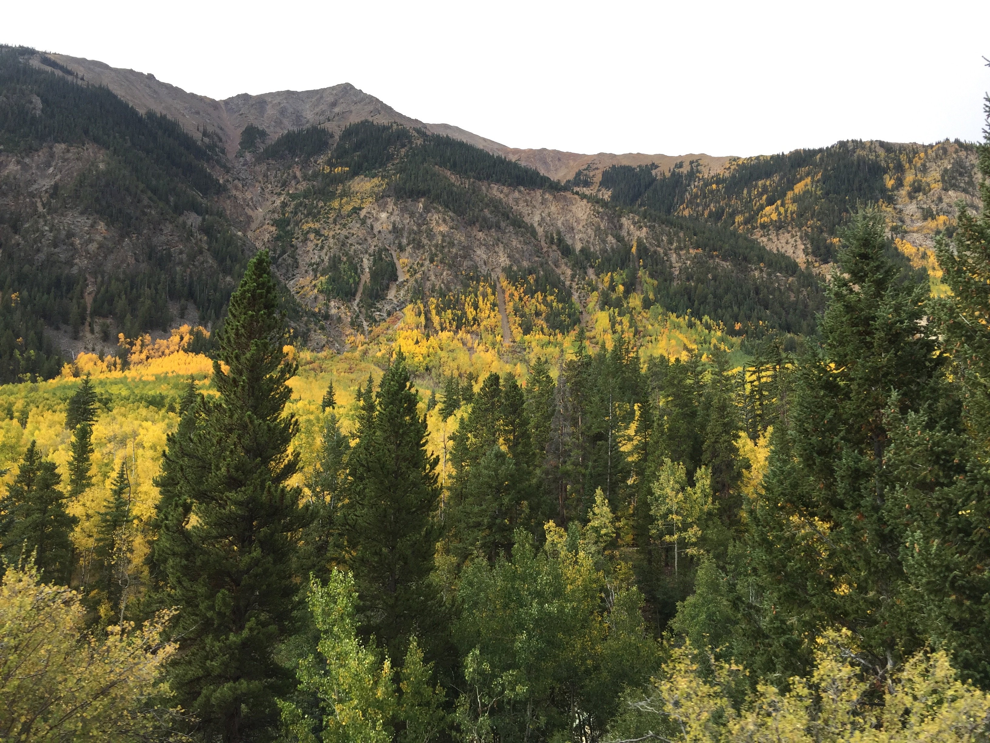 Went to get my $6.56 coffee after 7a this am — vacation kicking in!  We walked to the store to get some more fruit, nuts and decided to take the bus to the Maroon Bells and see the colors.   So we get a free city bus a block down from the hotel to Aspen Highlands, about 20 minutes.  We buy tickets for the roundtrip Maroon Bells bus ($6 each) in the sport shop and get in line.  One bus was loading and leaving as we got in line and the next one came about 10 minutes later.  SO. MANY. PEOPLE.  It’s Monday for chrissake.   Given all the people, Bob’s sore hamstring and my problematic lower back we voted against the hike to Crater Lake which we have done twice — first time in freezing drizzle and the last time when we came face to face with a big bear.