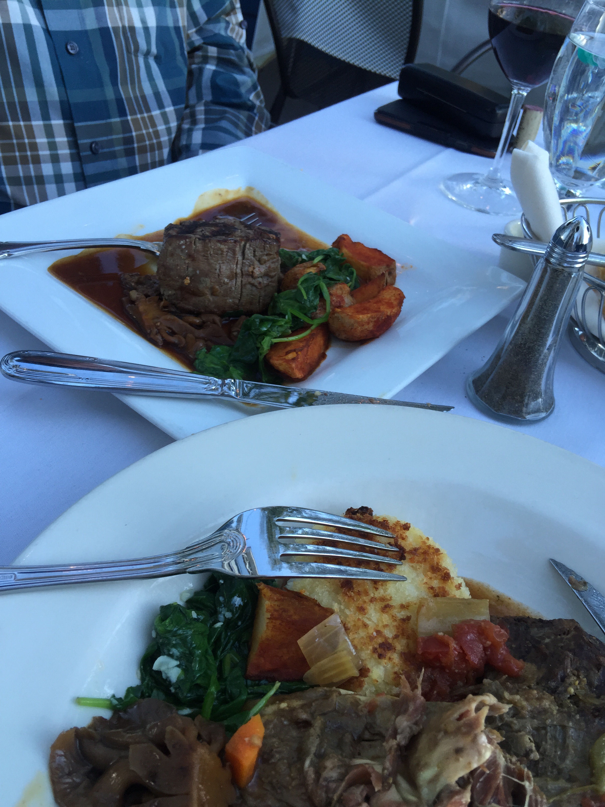 Here is the table before the filet, fries, chorizo rice and braised garbanzo beans showed up…..